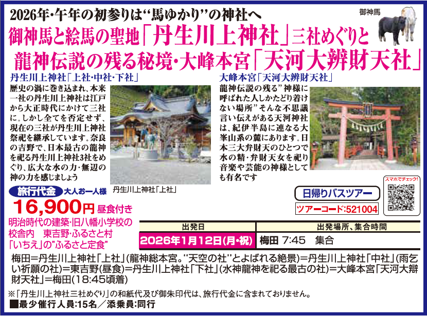 この商品は募集型企画旅行です。旅行条件については こちら の「(国内)募集型企画旅行条件書」を確認の上、印刷又はファイル保存してください。