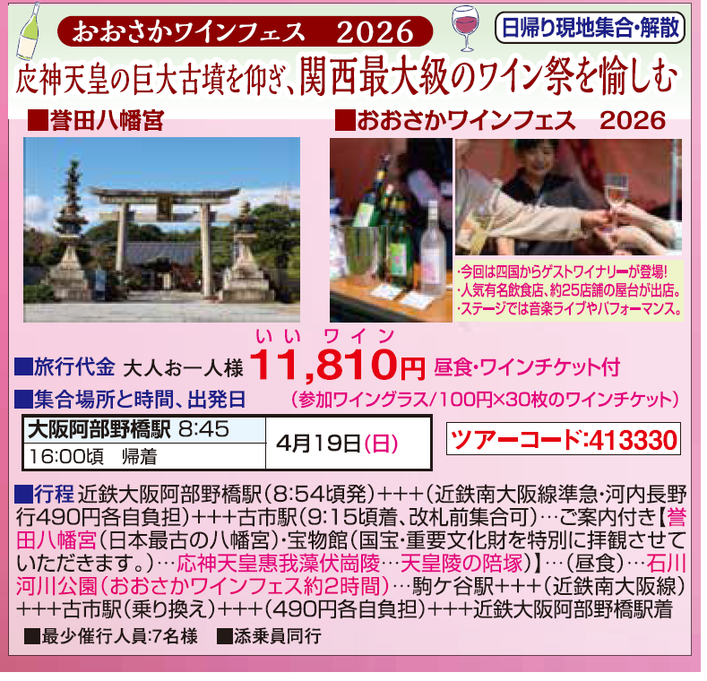 この商品は募集型企画旅行です。旅行条件については こちら の「(国内)募集型企画旅行条件書」を確認の上、印刷又はファイル保存してください。