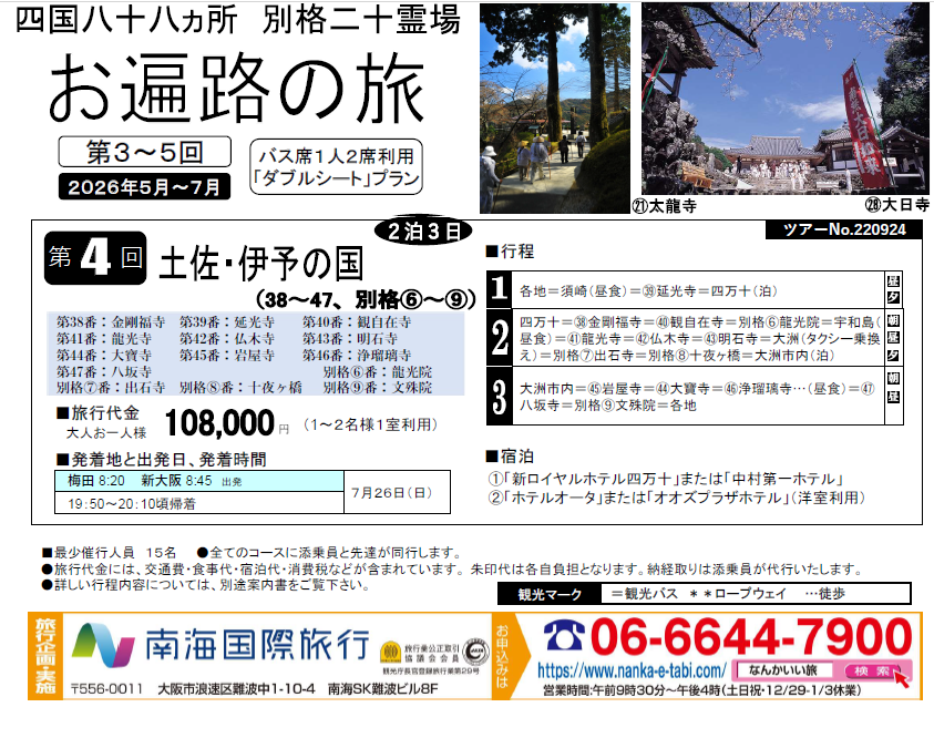 この商品は募集型企画旅行です。旅行条件については こちら の「(国内)募集型企画旅行条件書」を確認の上、印刷又はファイル保存してください。