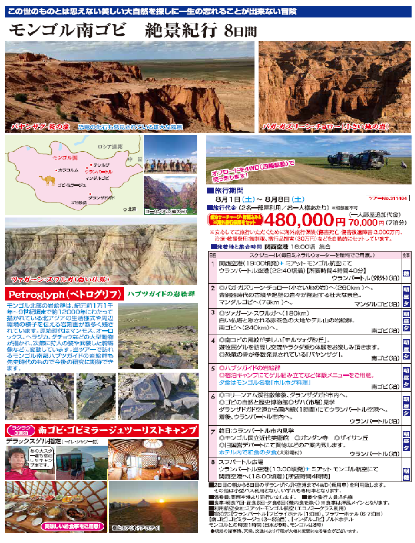 | 1 | 関西空港(19:00頃発) ミアット・モンゴル航空にて